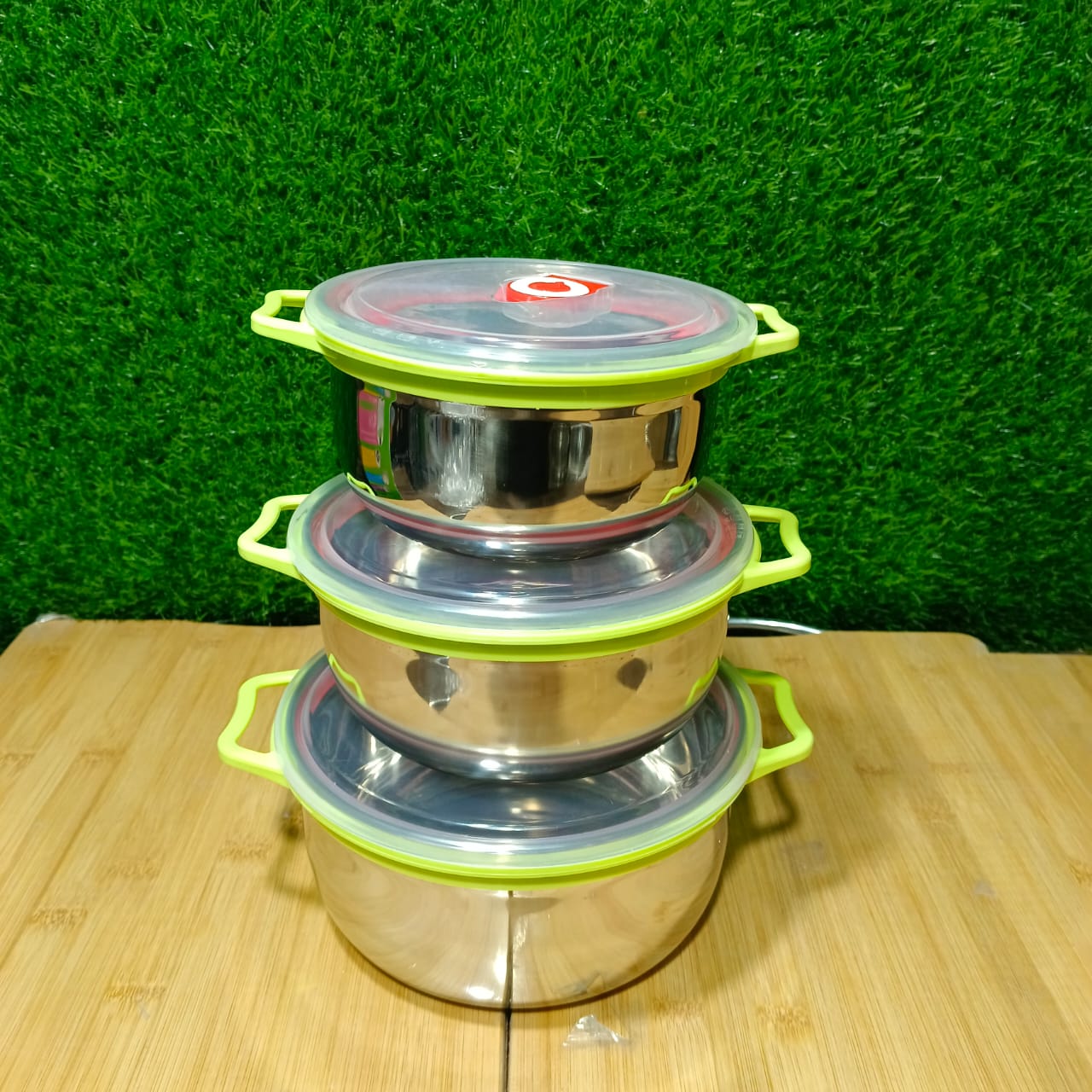 3pc Stainless Steel Airtight Bowl Set with Handles