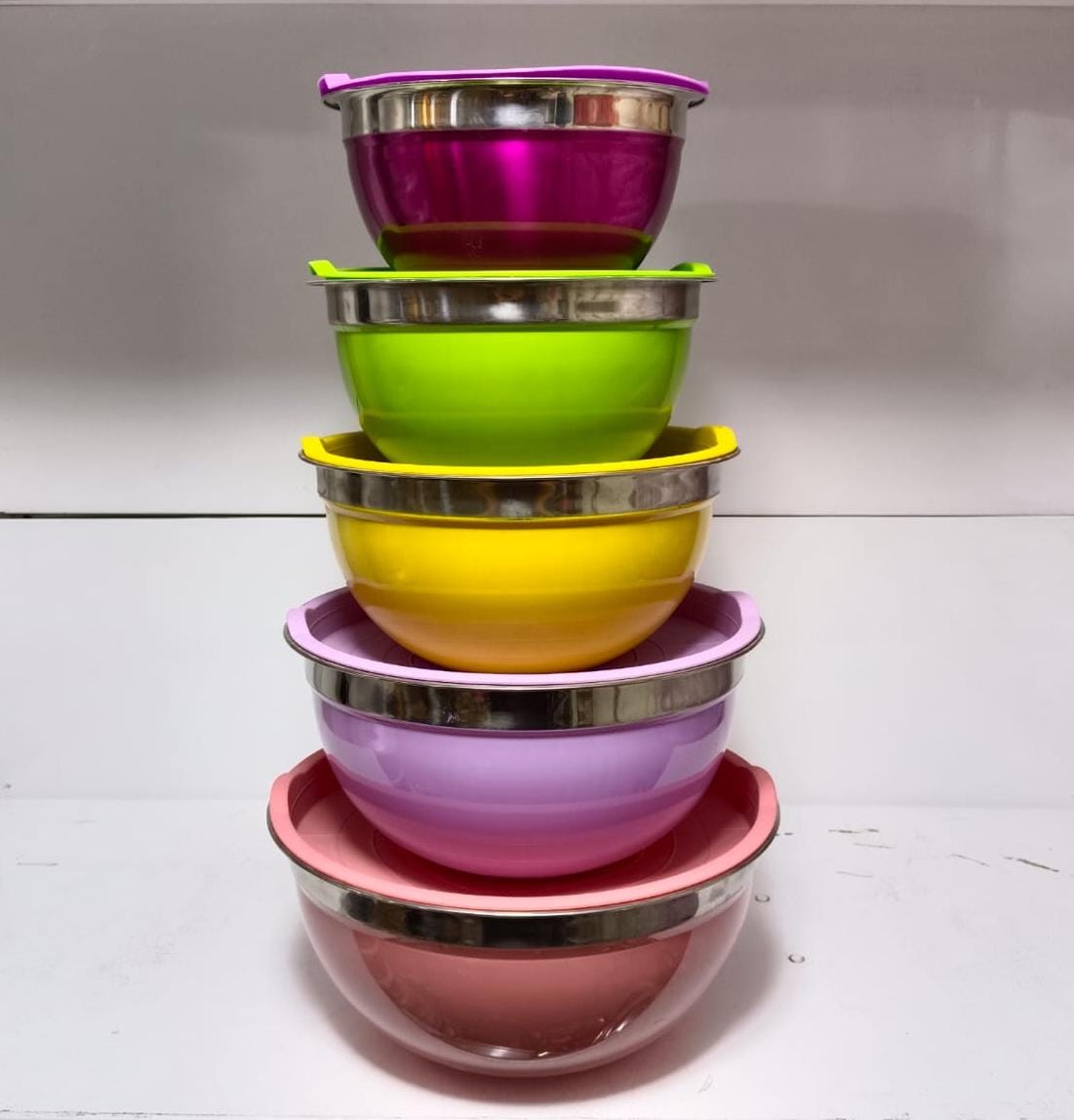 Introducing our vibrant 5-piece colorful bowl set in a spacious big size, perfect for adding a splash of joy to your kitchen. Crafted with durable materials and featuring a range of lively hues, these bowls are not only functional but also a delightful addition to your dining table. Whether you're serving up salads, snacks, or soups, these bowls are designed to accommodate your needs with style. Upgrade your kitchenware collection with this versatile and eye-catching bowl set, sure to brighten up any mealtime occasion.
